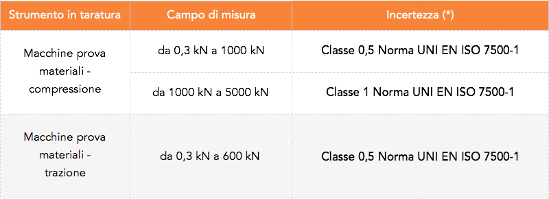 Il laboratorio materiali e strutture MASTRLAB è inoltre in grado di effettuare Misura riconducibili ai campioni primari delle gradezze fisiche per i seguenti strumenti:
